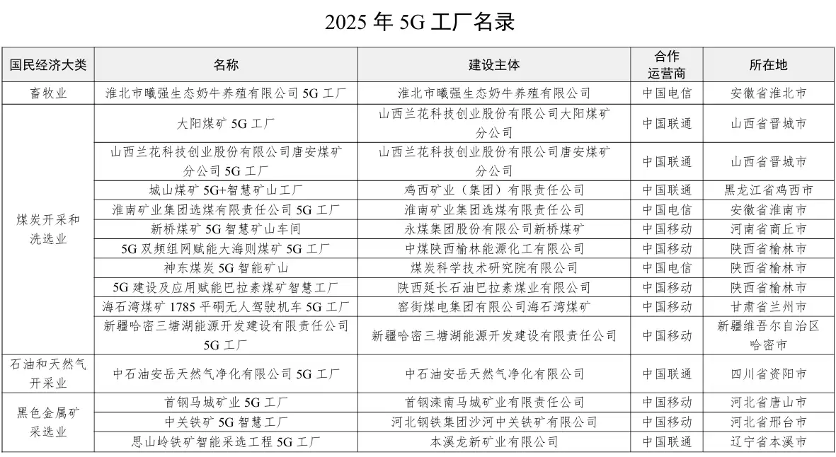 8 月 26 日消息,工信部昨日发文,经地方推荐、专家评审等工作,形成《2025 年 5G 工厂名录》,共包括 48 个行业、560 个项目,现进行公示。