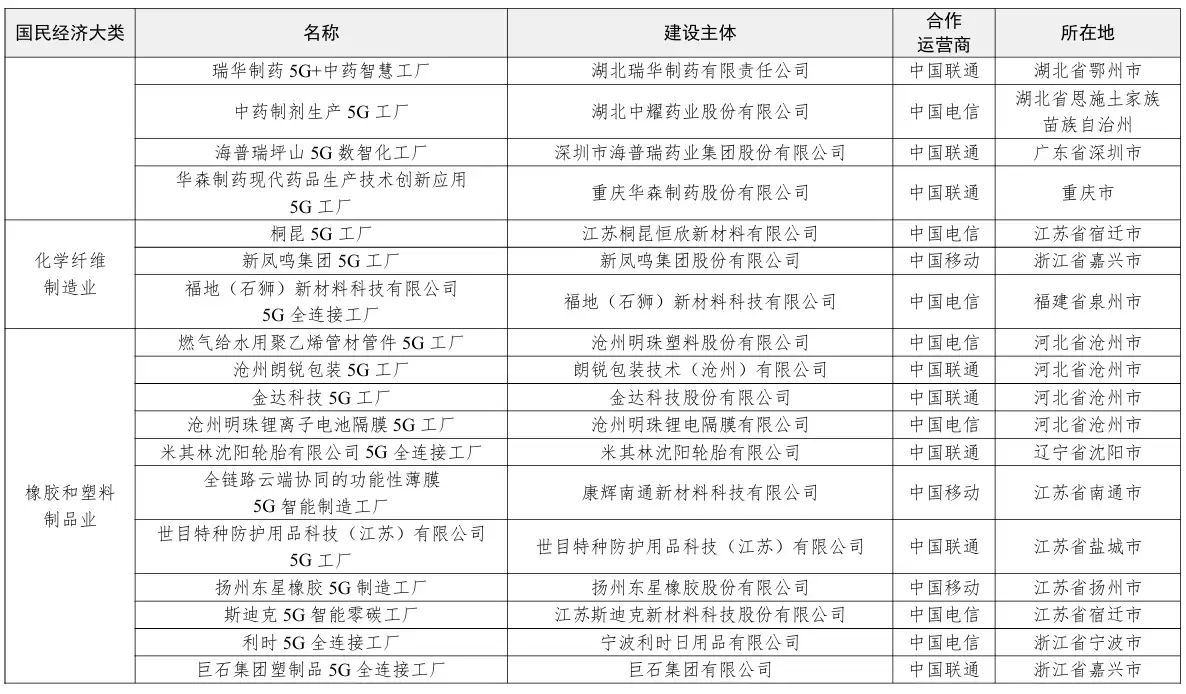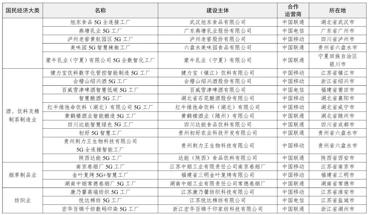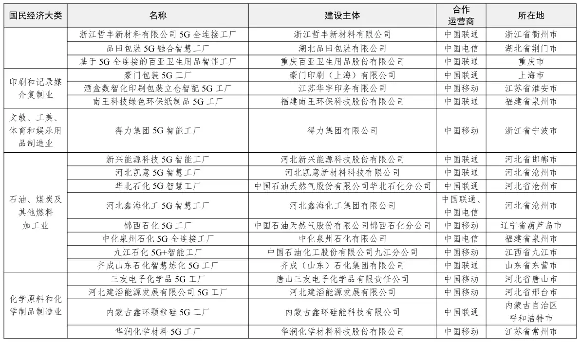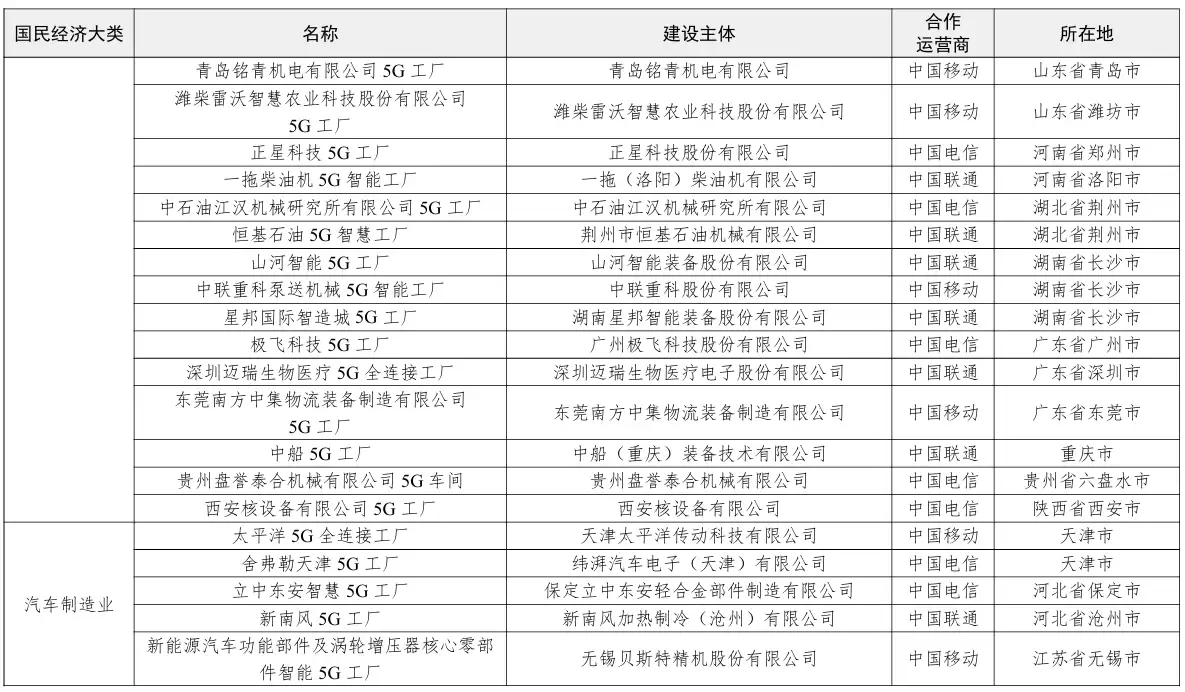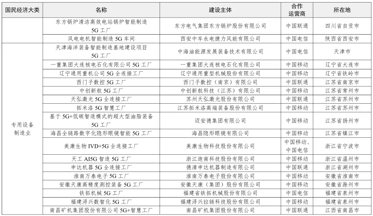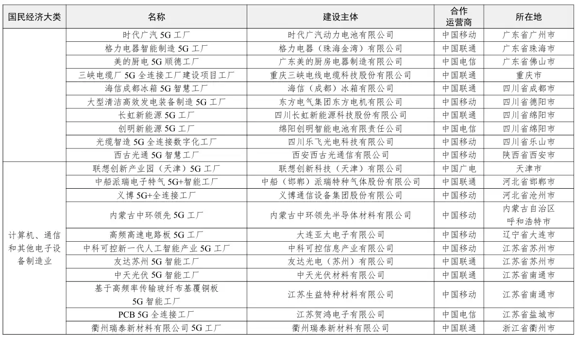 计算机、通信和其他电子设备制造业大类中,中兴长沙 5G 全连接工厂、OPPO 重庆智能终端创新示范 5G 工厂等入选。