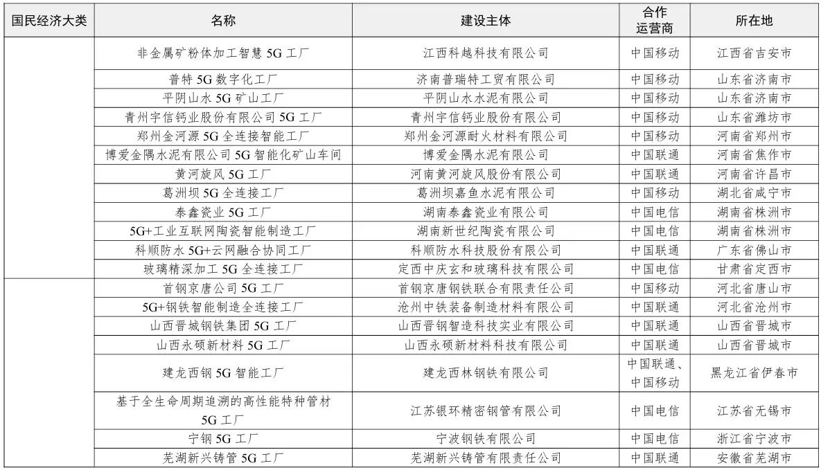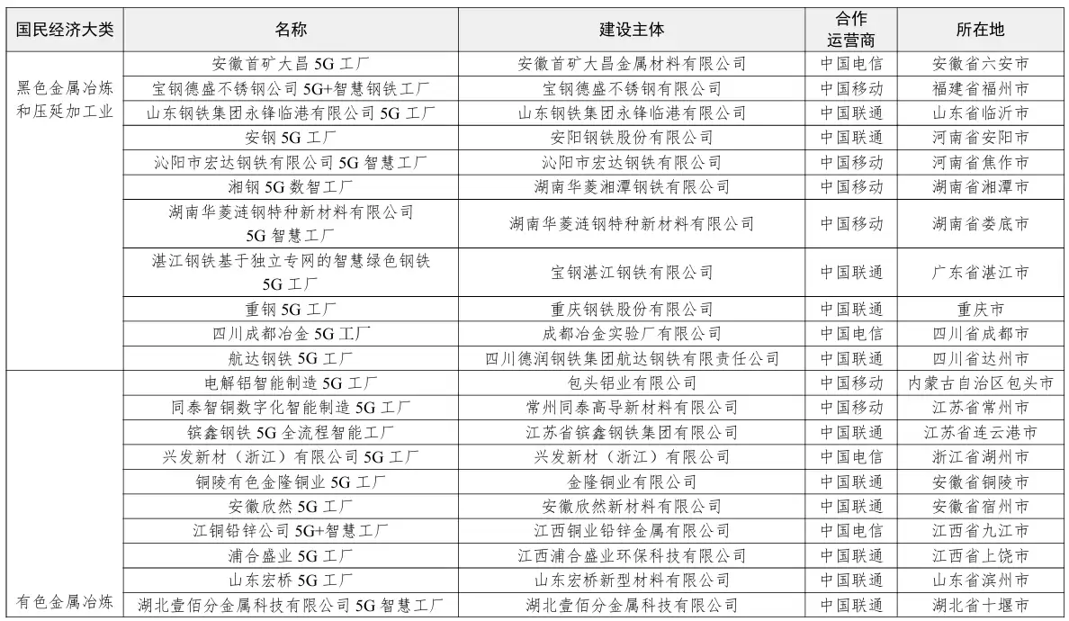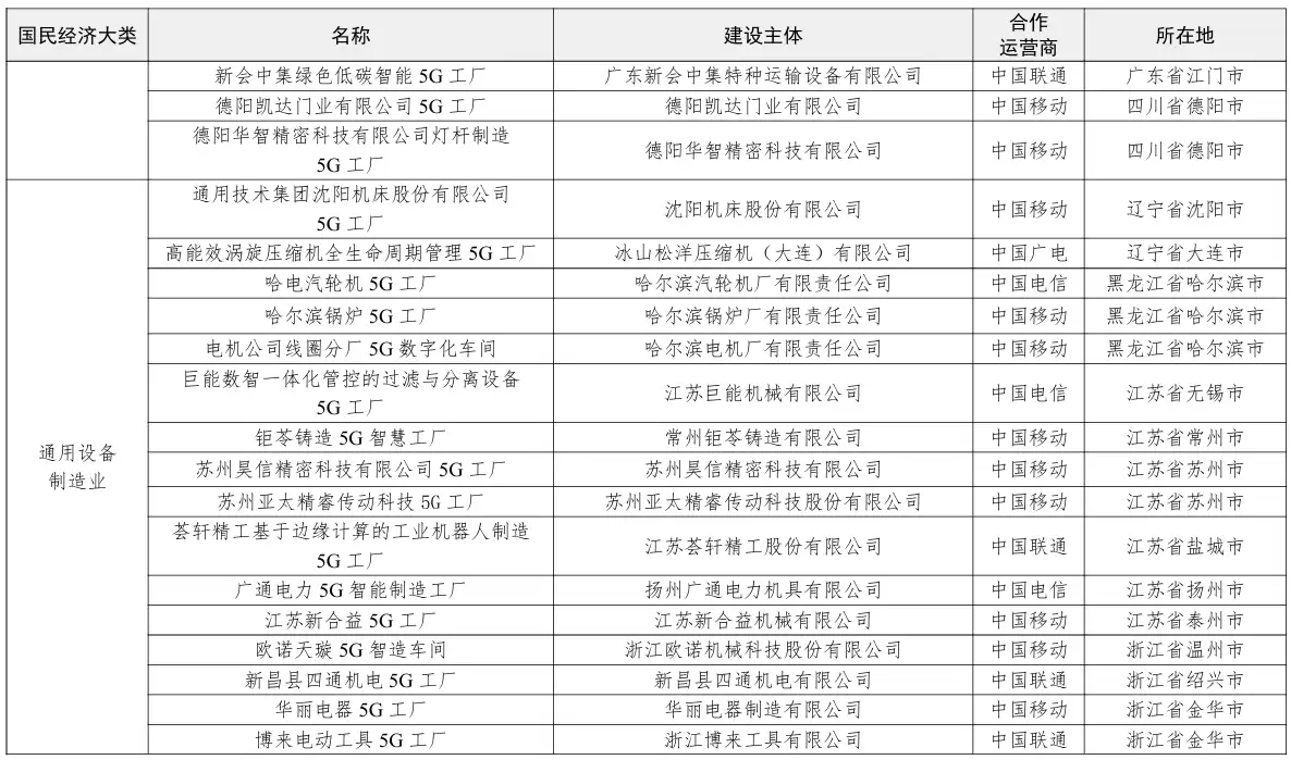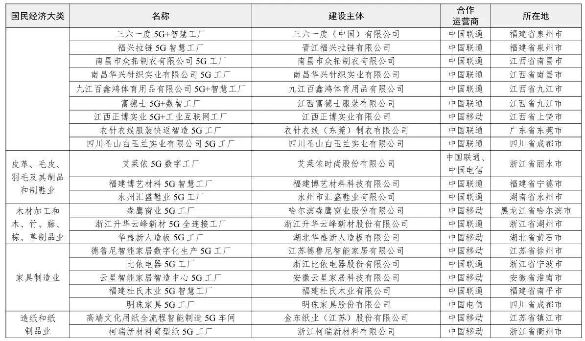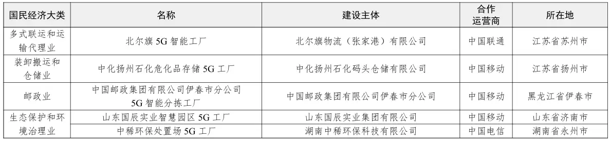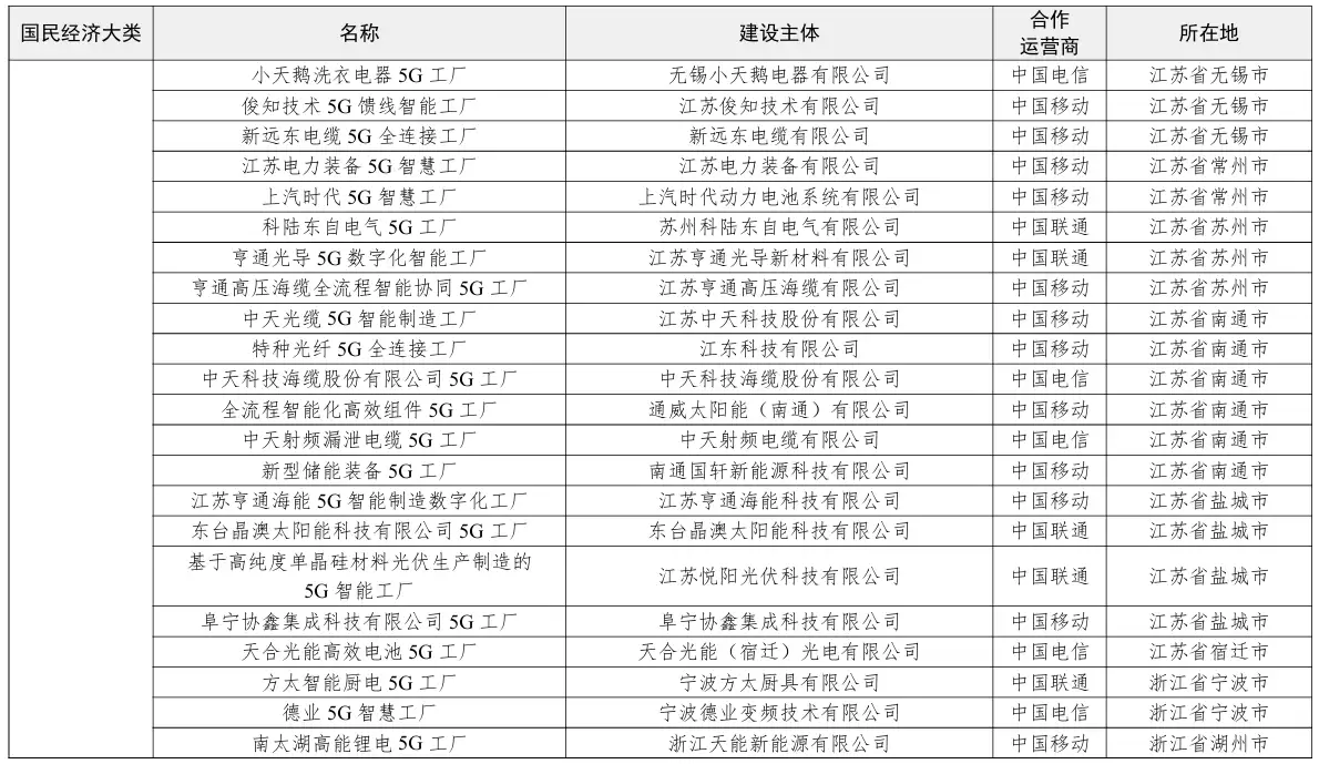 计算机、通信和其他电子设备制造业大类中,中兴长沙 5G 全连接工厂、OPPO 重庆智能终端创新示范 5G 工厂等入选。