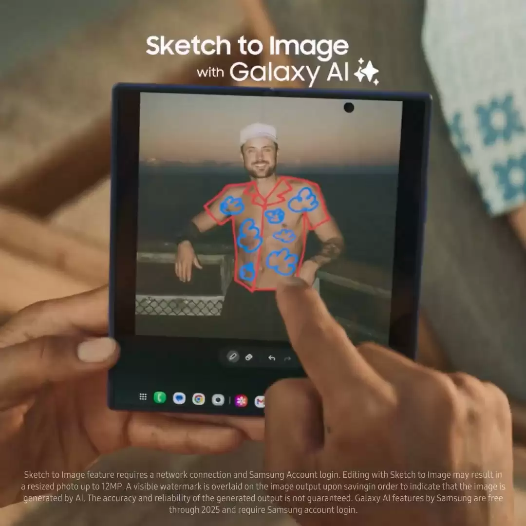在该宣传视频中,三星还顺带展示了 Galaxy Z Fold7 搭载的“手绘生成图像”(Sketch to Image)功能。该功能属于 Galaxy AI 套件功能之一,主要凸显创作场景的实用性与趣味性,可基于用户手绘草图,自动生成高质量图像。