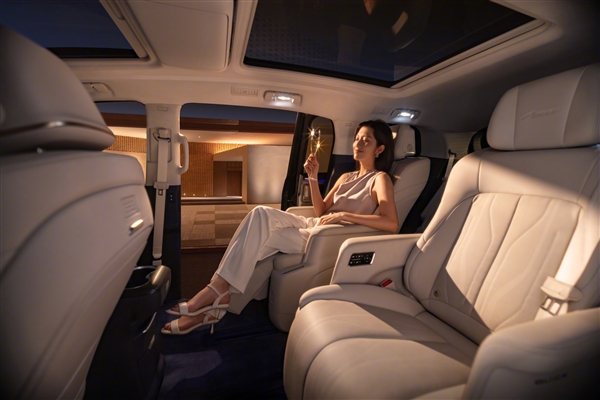 双独立二排座配备320mm超长电动前后滑动调节,新增扶手加热和腿托加热,实现环抱式全域座椅加热,拥有三档可调8点“指压式”增强按摩,同时还新增一键VIP功能,实现头等舱云端模式,可与副驾座椅联动。