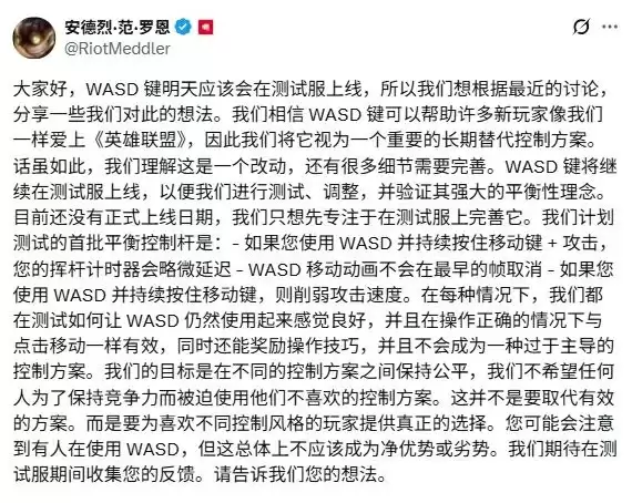 《英雄联盟》WASD操作平衡方案明日上线测试,总监详解优化细节
