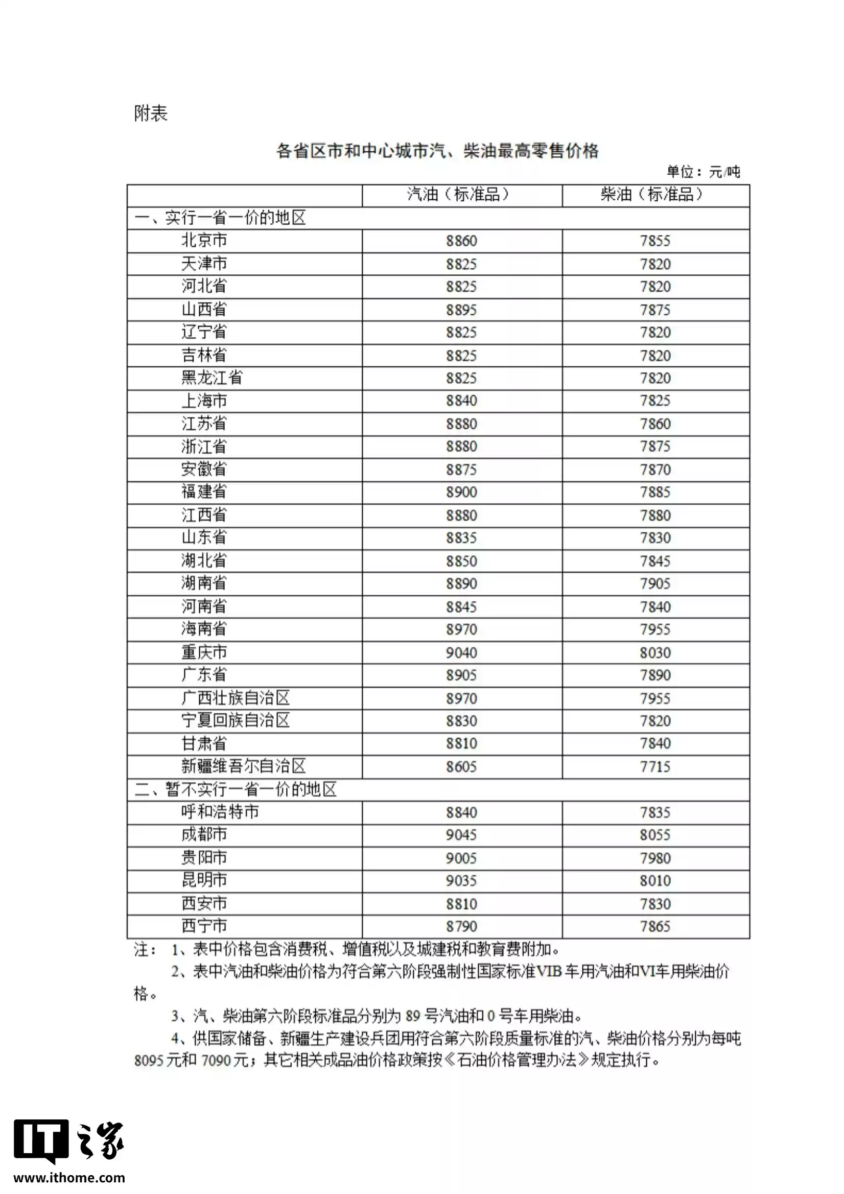 从2025年8月26日24时起,国内汽油、柴油(标准品)价格将分别下调180元/吨和175元/吨。各省(区、市)及中心城市的成品油最高零售价格详见官方附表。