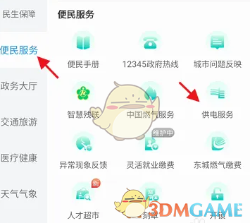 3、进入更多应用,找到便民服务,找到供电服务,点击供电服务进入