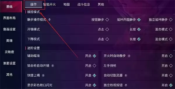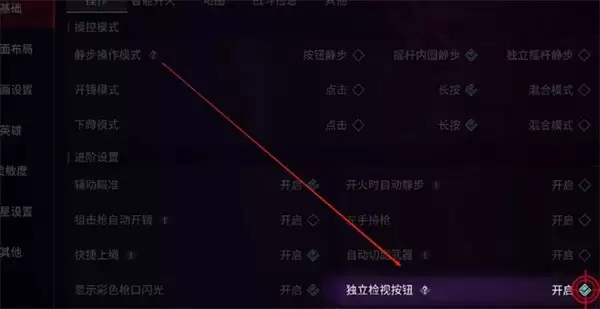 首先进入游戏大厅界面,点击屏幕右上角的设置齿轮图标。在下拉菜单中选择"基础设置"→"操作设置",找到"独立检视按钮"选项并将其切换至开启状态。