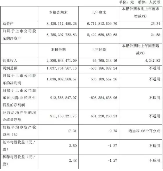 8月26日,寒武纪(688256.SH)发布的半年报,直接在资本市场投下了一枚重磅炸弹。2025年上半年,公司实现营业收入28.81亿元,同比增长4347.82%;归属于母公司股东的净利润10.38亿元,而去年同期还是亏损5.3亿元,如今一举扭亏为盈,基本每股收益也从-1.27元翻红至2.5元。