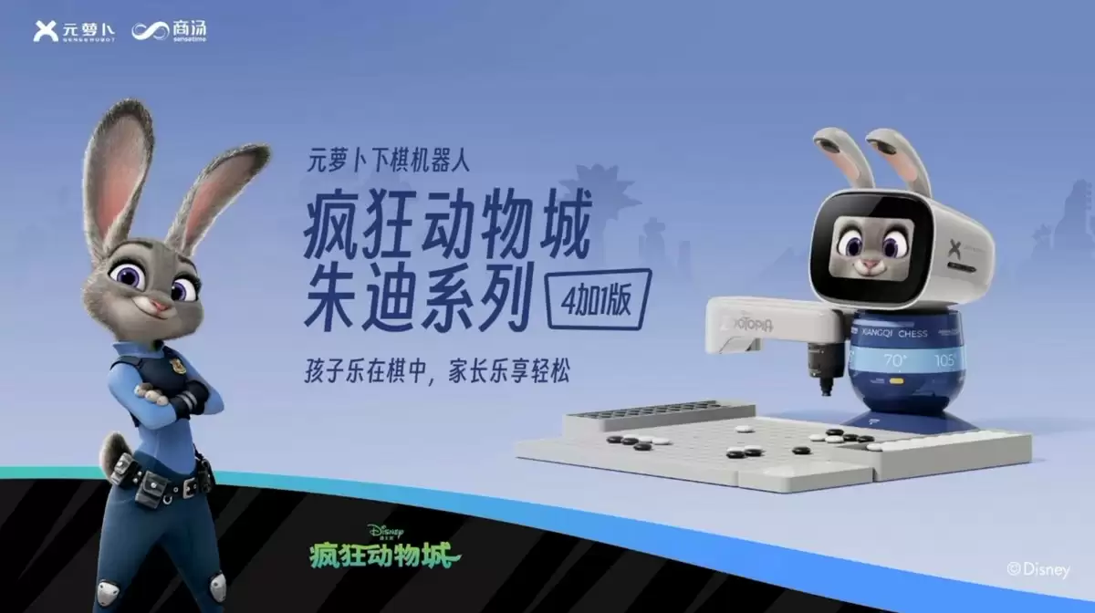 8月26日,商汤科技旗下家用机器人品牌"元萝卜SenseRobot"携手迪士尼经典动画《疯狂动物城》,推出年度诚意之作——"元萝卜下棋机器人疯狂动物城朱迪系列4加1版"(简称"元萝卜朱迪系列")。这款跨界合作产品将为孩子们带来全新的智能陪伴体验。