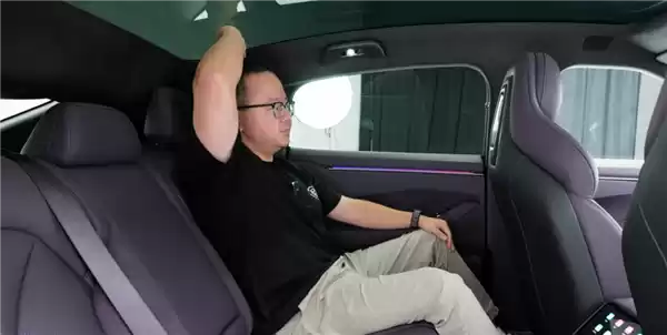 而且主驾的坐姿非常低,发布会说是电车里仅次于Taycan。反正我已经很久没在电车上试过这么接近半躺着去开车了。