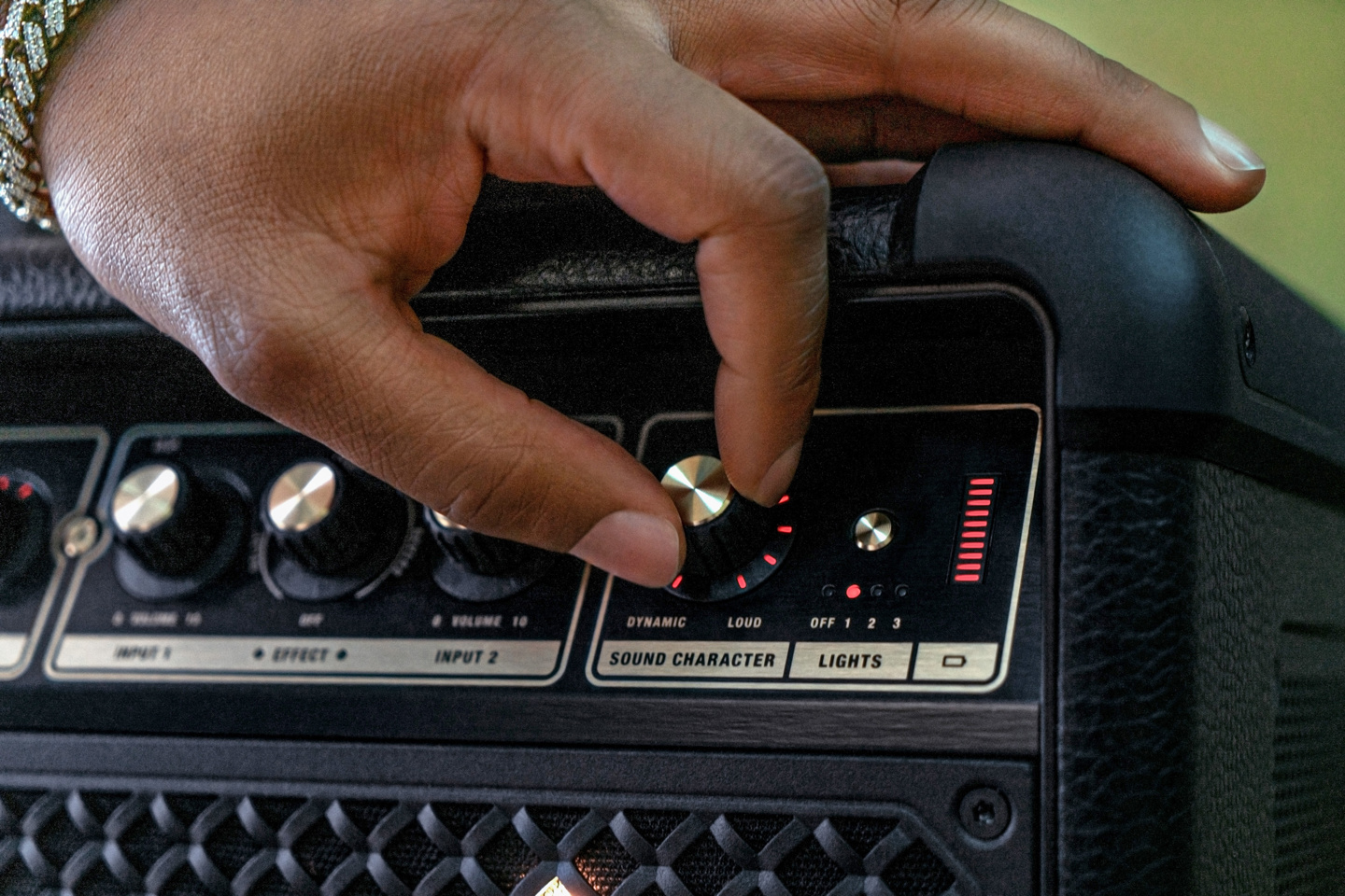 音箱具备 IP54 防水等级,可应对小雨,并内置舞台灯光,设计十分炫酷,同时配有手柄和轮子,便于搬运。其还提供两个组合插口,可接麦克风或乐器。具体来看,Bromley 750 的 LED 舞台灯光提供三个动画预设,其中两个会根据播放内容实时变化。