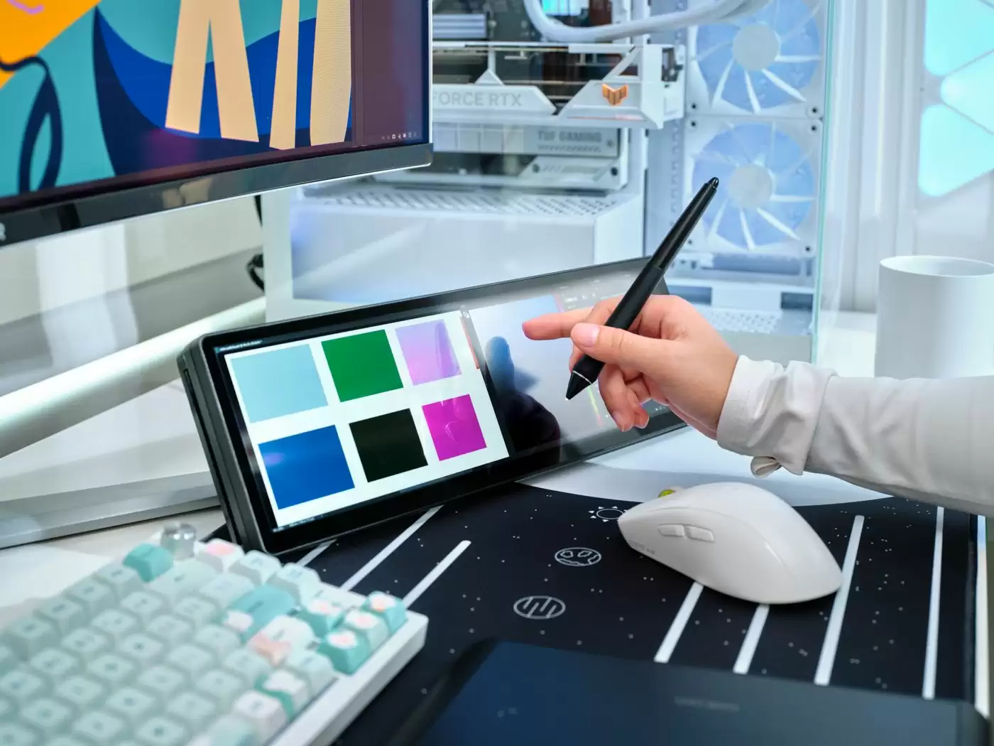 XENEON EDGE 副屏支持四种固定方式,包括在机箱内占据 360 冷排位、配合桌面支架安放、磁吸到铁质物件外部、采用 G1/4" 螺纹固定;其可作为机箱内展示区、桌面、信息监控屏、显示器扩展、直播与生产力工具(如模拟 Stream Deck 直播控台按键)使用。