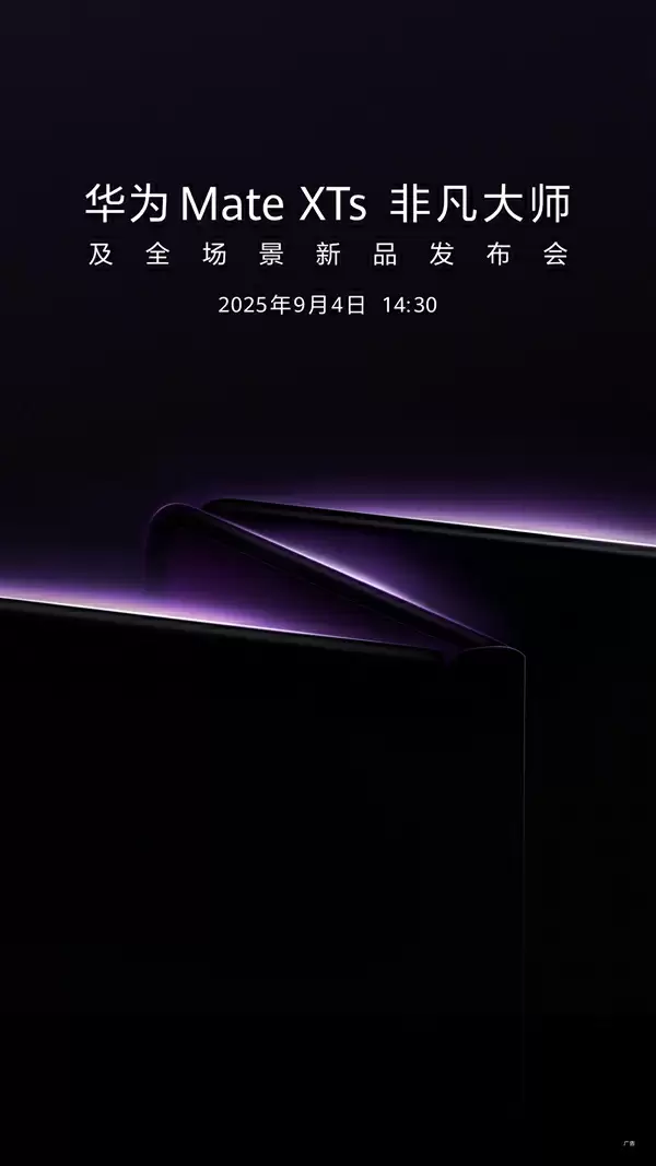 8月27日消息,华为终端官方微博宣布,华为MateXTs非凡大师及全场景新品发布会定档9月4日14:30。