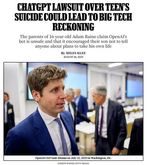美国父母起诉OpenAI:ChatGPT被指协助16岁少年自杀