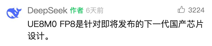但更重要的信号还在于,DeepSeek V3.1引入了一种称为“UE8M0 FP8 Scale”的新参数精度格式,并明确表示这是“针对即将发布的下一代国产芯片设计”的精度格式。