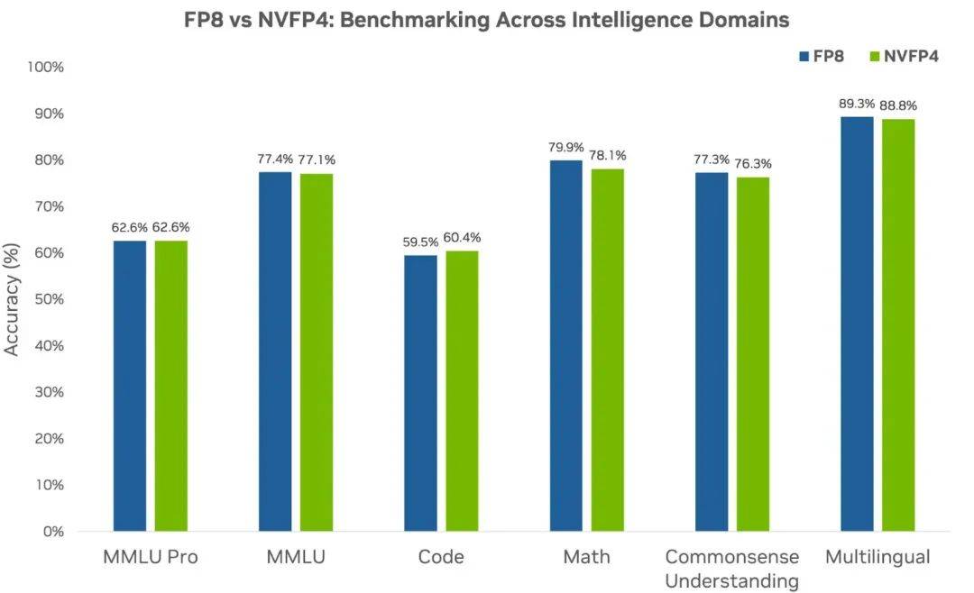 相比于以往训练常用16位(FP16/BF16)或8位(FP8)精度,而NVFP4将精度进一步压缩到4位,在保持模型精度的同时大幅提升训练速度和算力利用率。
