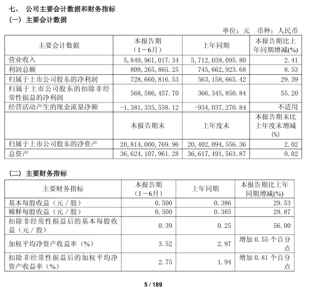 8 月 28 日消息,中科曙光今日披露半年报,上半年公司实现营业收入 58.5 亿元,同比增长 2.41%;归属于上市公司股东的净利润 7.29 亿元,同比增长 29.39%;基本每股收益 0.5 元。