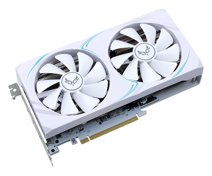 这款联名显卡三维 233×124×51 (mm),厚度约为 2.5 槽,采用白色 PCB,配备双 100mm 风扇 + 四热管 + 镜面铜底散热系统,视频输出接口配置为 3× DisplayPort + 1× HDMI。其 GPU 核心加速频率来到 2505MHz (+30MHz),显卡功耗保持在 220W。