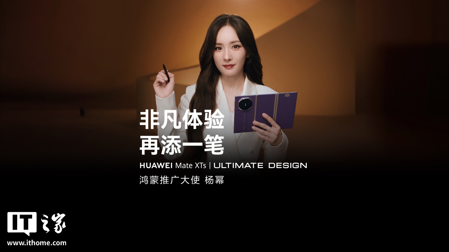 华为今天早些时候发布了 Mate XTs 非凡大师三折叠手机的预热视频。视频内容显示,杨幂继续担任“鸿蒙推广大使”,并首次展示了 Mate XTs 的紫色版。