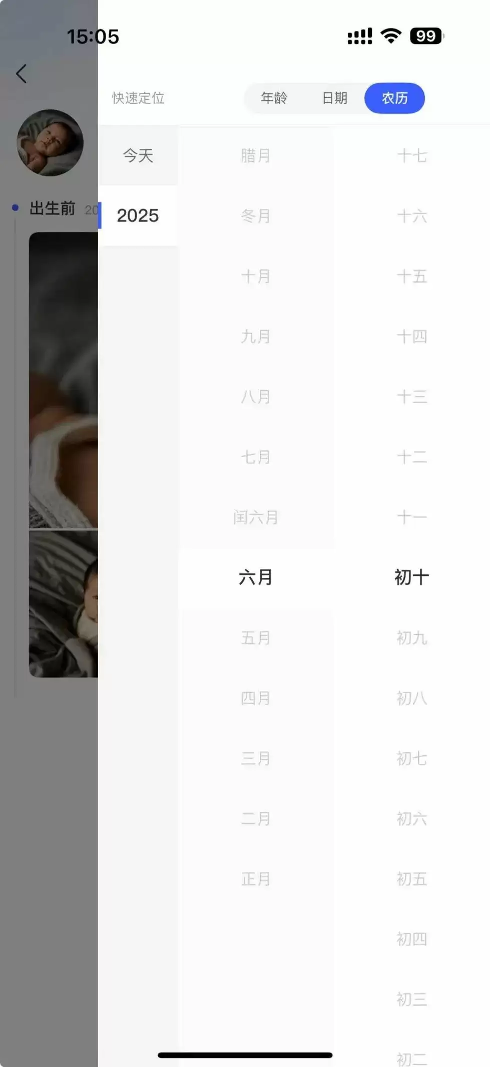 虽然大多数朋友日常使用通用的阳历日期,但是爷爷奶奶等长辈还是更容易记住农历时间,为了便于快速查找农历时间下的宝宝照片,本次新增了农历时间线快速定位功能,让家中长辈也能快速看到孩子的笑脸。
