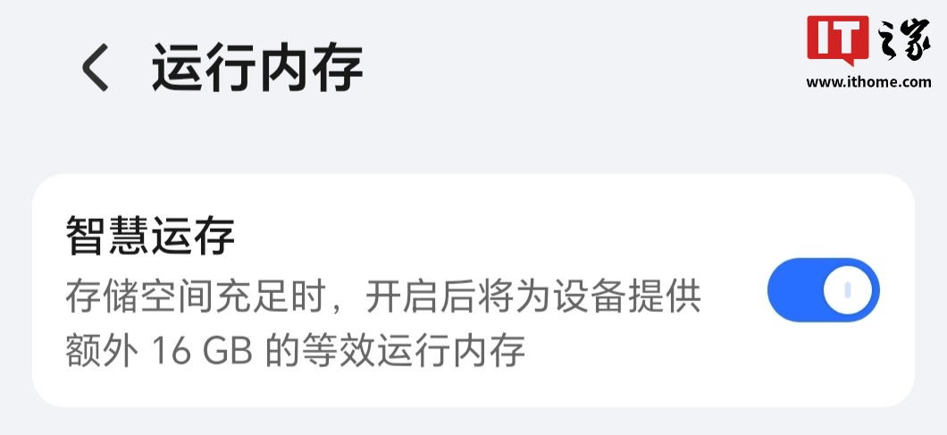 此前报道,荣耀此前为旗下机型提供有“智慧运存”功能(目前可追踪到荣耀 2021 年 6 月发布的 50 系列手机已支持该功能),该功能默认开启,无法关闭。有博主曾透露,荣耀 Magic V5 折叠屏手机同样提供 16GB“智慧运存”,但与此前设备不同的是,Magic V5 支持关闭“智慧运存”功能。