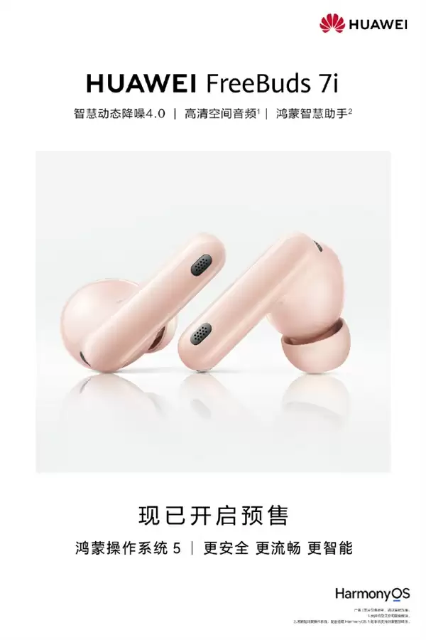 华为FreeBuds 7i预售599元:智慧动态降噪4.0+骨传导麦克风