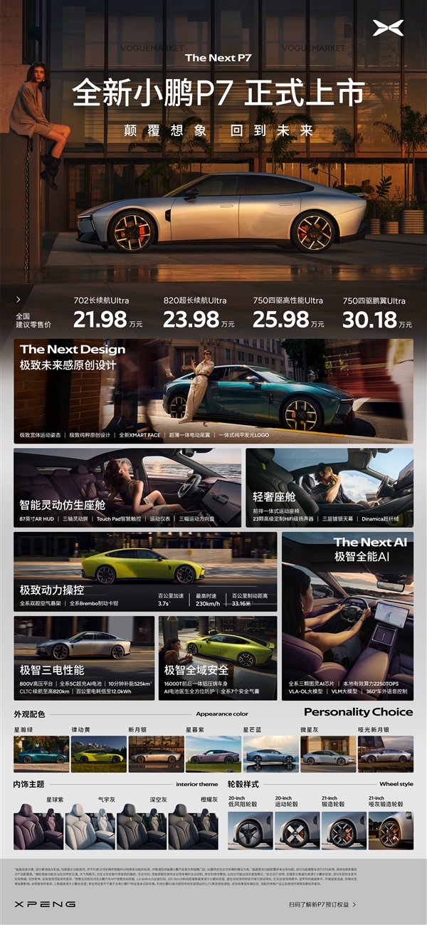 8月27日消息,今日晚间,全新小鹏P7上市,共推出款4车型,售价区间21.98-30.18万元。