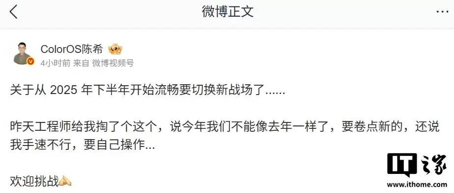 陈希在文中表示,昨天 OPPO 的工程师向他展示了 ColorOS 16 的新功能,并表示:“今年我们不能像去年一样了,要卷点新的,还说我手速不行,要自己操作”。