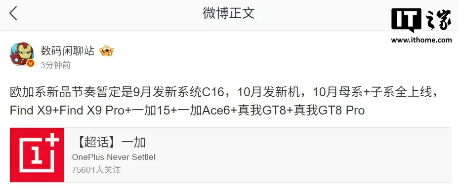 10 月份发新机,母系 + 子系机器全上线,涵盖 Find X9、Find X9 Pro、一加 15、一加 Ace6、真我 GT8、真我 GT8 Pro