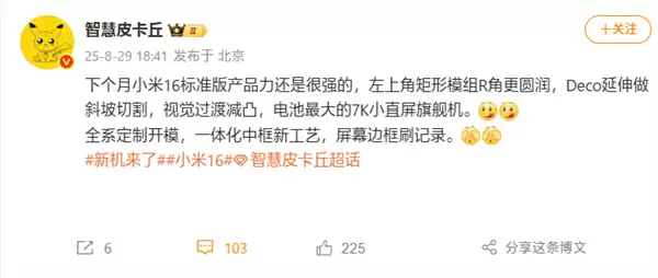 值得注意的是,这次屏幕也有新技术,边框将刷新行业记录,此前爆料称黑边只有1mm,对比小米15的1.38mm大幅提升。