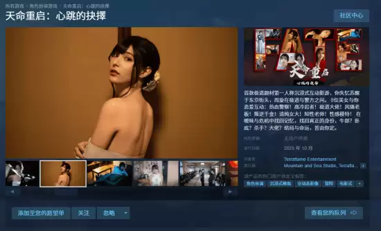 名为《天命重启:心跳的抉择》的极道题材恋爱向第一人称真人互动影像游戏,已正式开启Steam商店页面,2025 年 10 月发售。