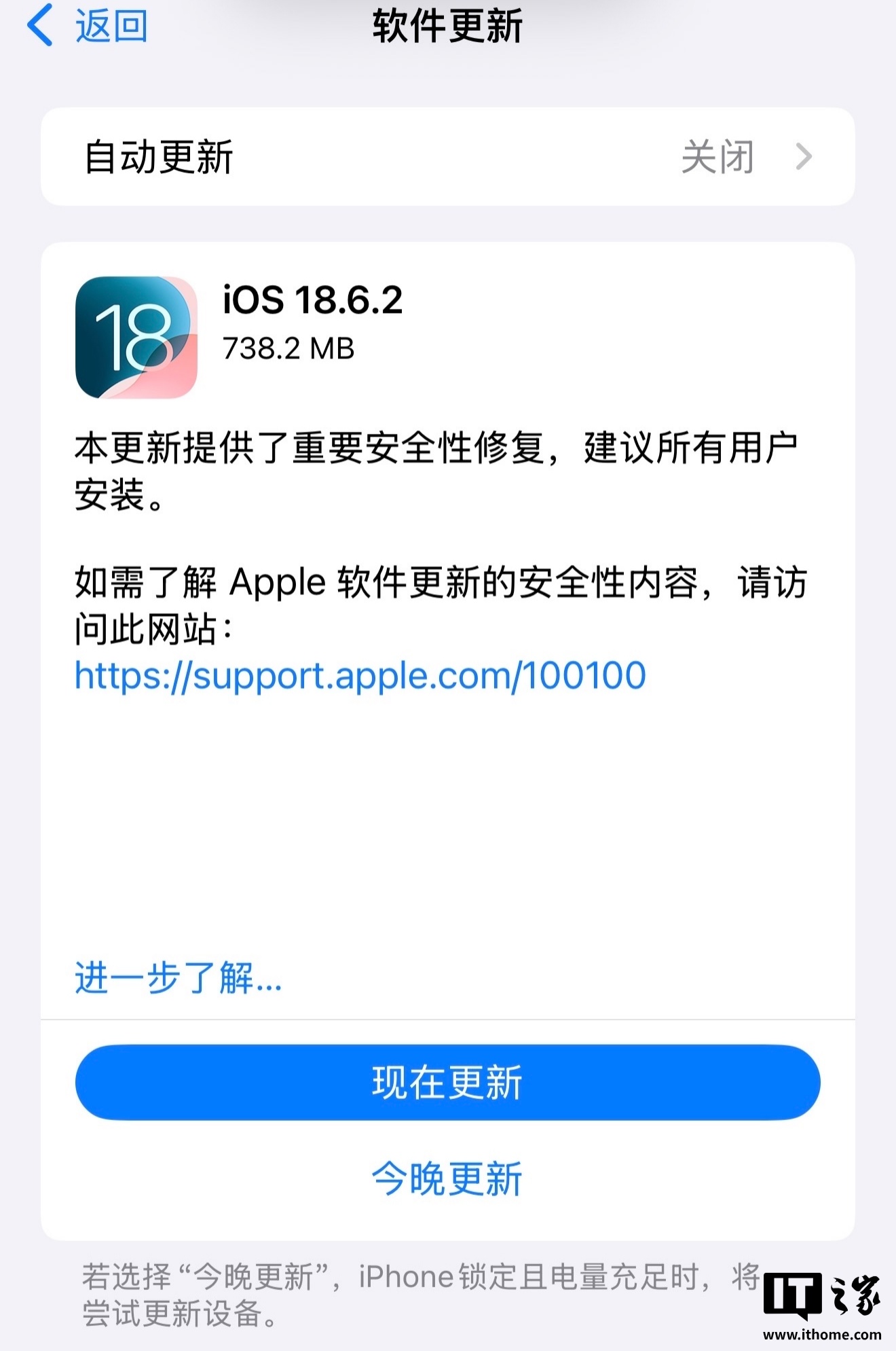 《苹果推送 iOS / iPadOS 18.6.2,预估是 iOS / iPadOS 26 前最后一轮小幅更新》