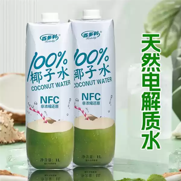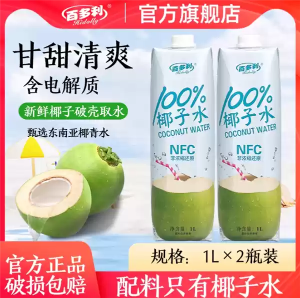 百多利鲜榨椰子1L*2瓶,平时要卖49 9元,今日下单领取36元优惠券,到手价13 9元。鲜榨 + 100%果汁 + 零添加!!购买链接:天猫(券后13 9元)NFC非浓缩还原,配料只有椰子水,不添