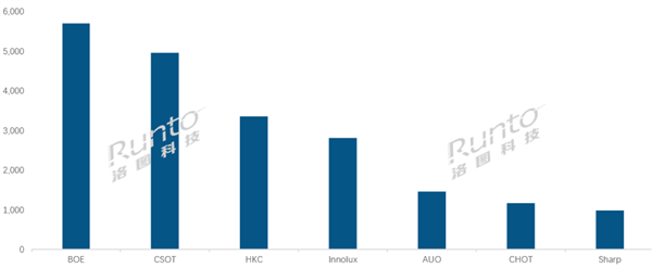 日系Sharp(夏普)当月市占率仅有4.8%,出货量约100万片,同比降幅超过20%。