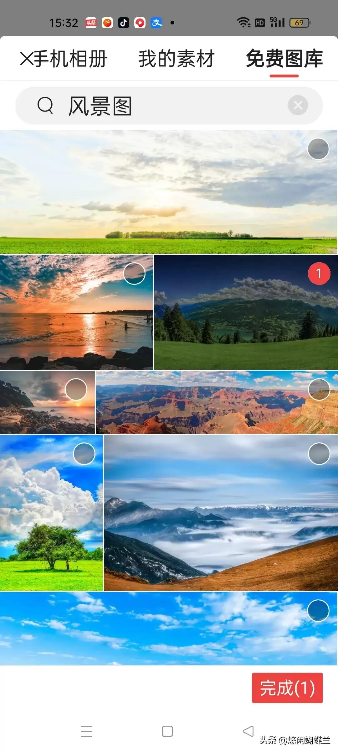 如果你的手机相册里没有你要需要的照片。就可以在免费图库里选择适合自己文章的照片。