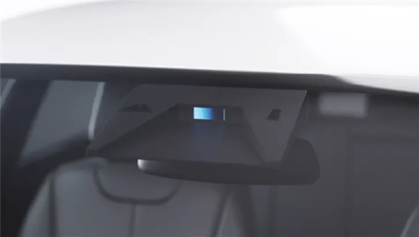 为了干掉汽车头顶这个大包,这次华为是把激光雷达搬到了前挡风玻璃内侧,也就是内后视镜背面的这个位置。