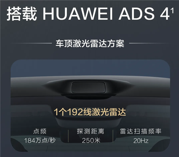 原来支持 ADS 4 的 192 线激光雷达依然没变,还是问界 M7 的最强智驾装备。