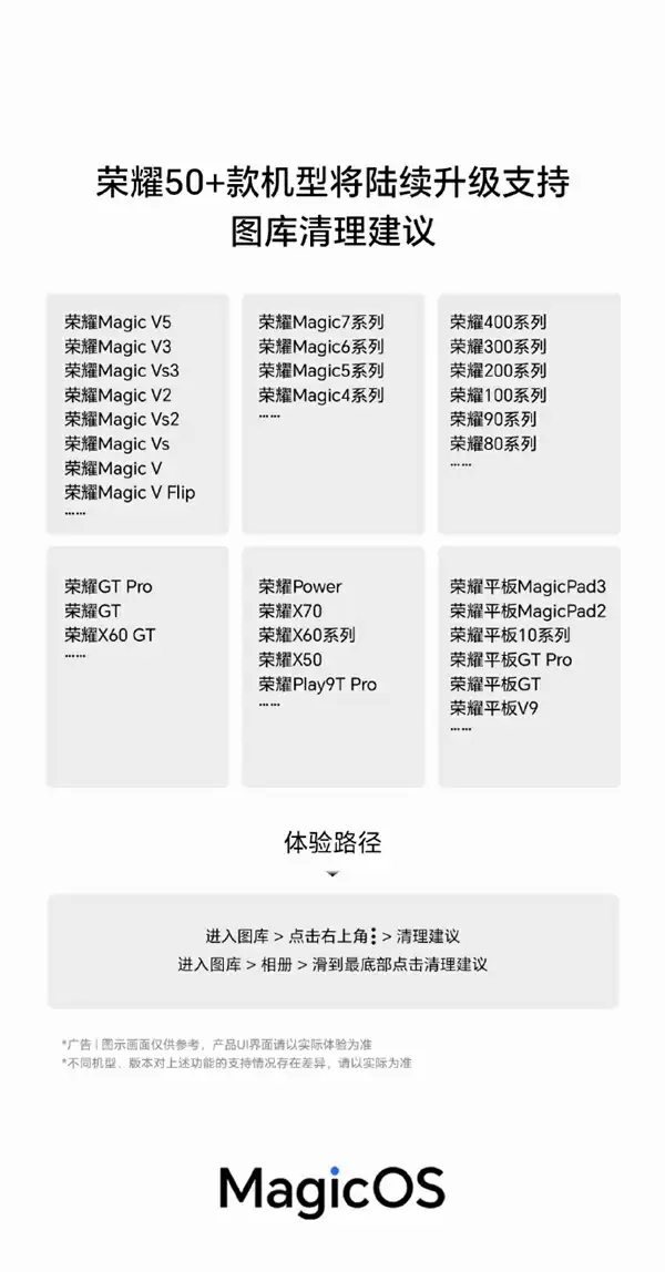 8月31日最新消息,荣耀正式宣布将为50余款新老机型推送图库清理建议功能升级。