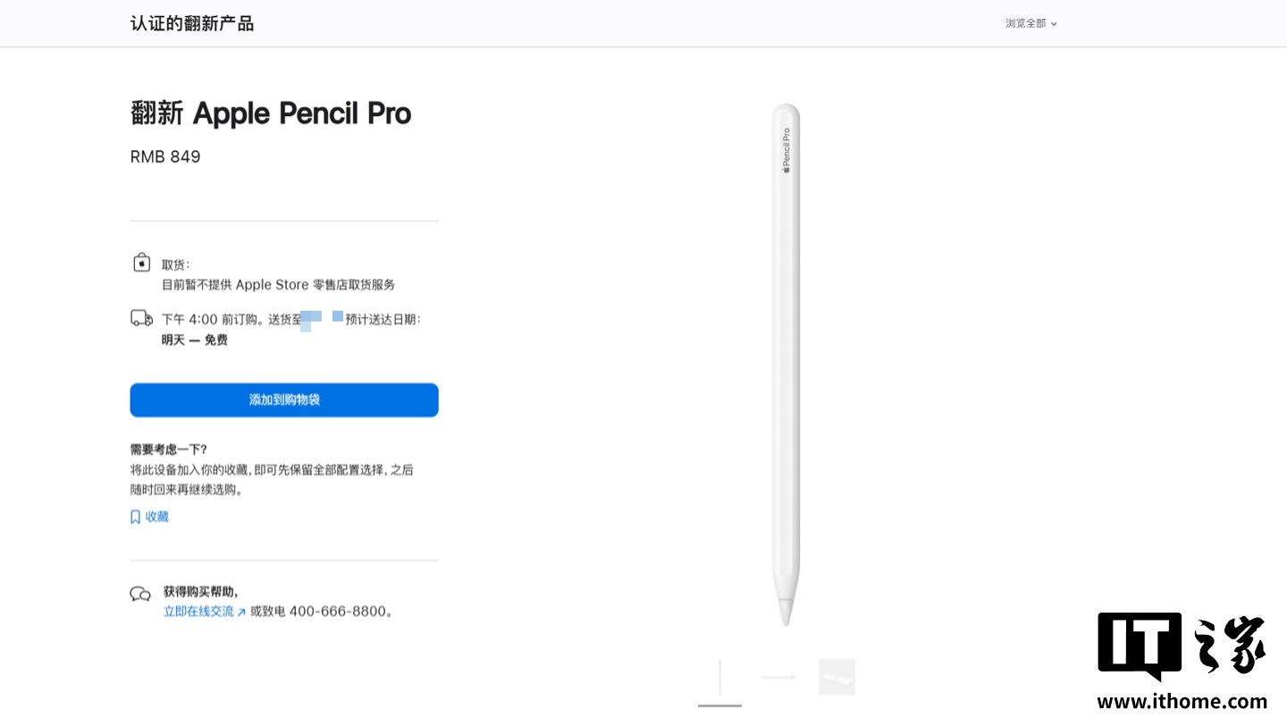 苹果翻新版Apple Pencil Pro优惠开售,849元比新品直降150元