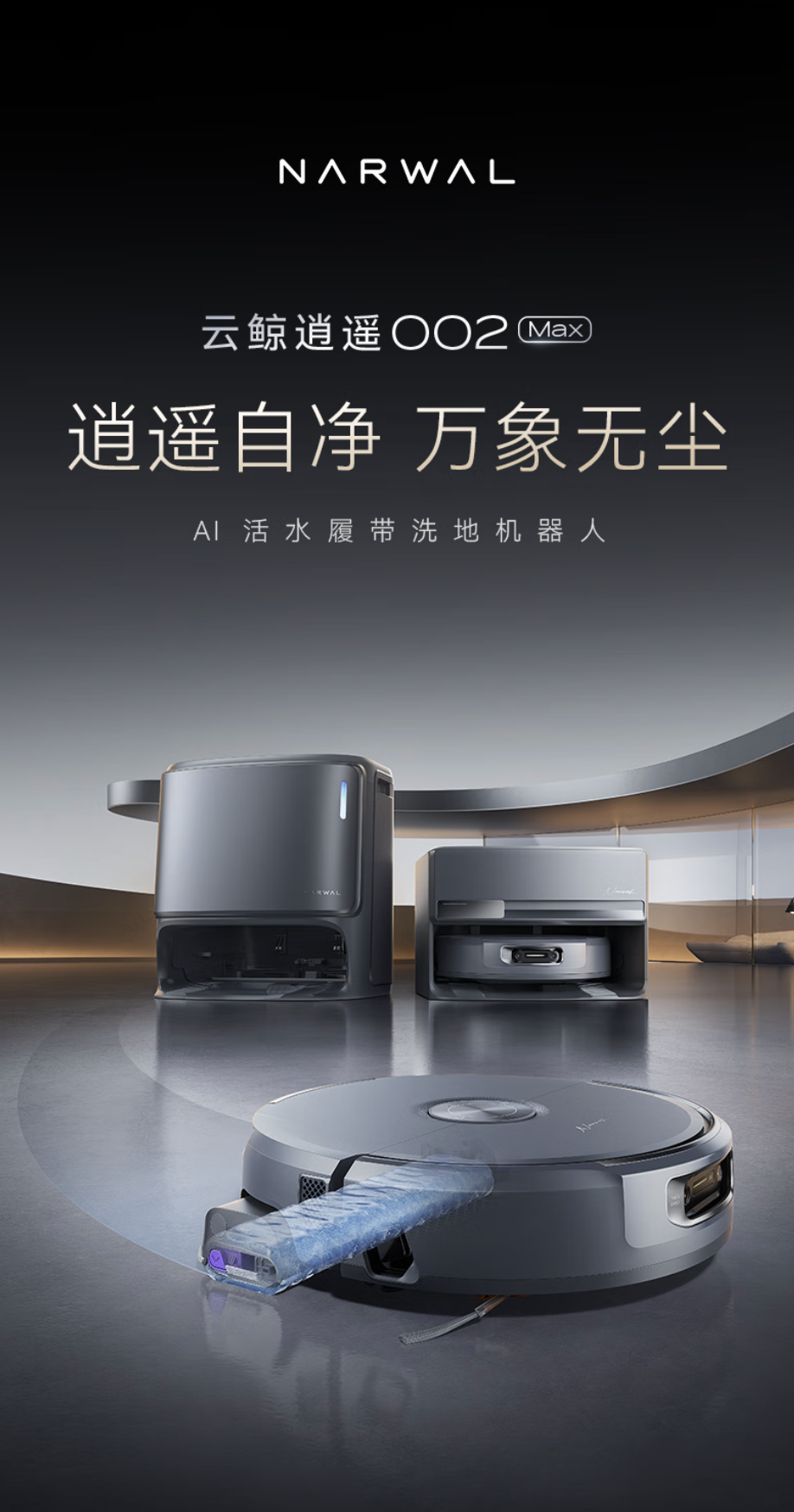 云鲸逍遥002 Max扫地机器人发布:25000Pa吸力+动态电解水杀菌,4599元起售