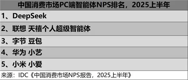值得一提的是,这些搭载天禧智能体的设备不仅收获了学生群体的青睐,更获得了权威机构的认可。国际数据公司(IDC)近日发布《IDC China Semiannual Net Promoter Score Device Tracker 2025H1》,即 2025 年上半年中国智能终端品牌净推荐值(NPS)研究报告指出,随着 AI 智能体在今年上半年大规模上市,用户的产品体验与品牌推荐意愿正发生深刻变革。其中,天禧个人超级智能体表现亮眼,斩获 PC 品类净推荐值亚军,展现出其在智能体技术领域的创新实力与用户口碑。