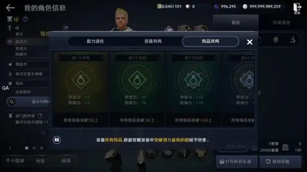 3、饰品共鸣:所有【首饰】(腰带、项链、戒指、耳环、手镯)突破+5以上也可获得额外战斗力加成。