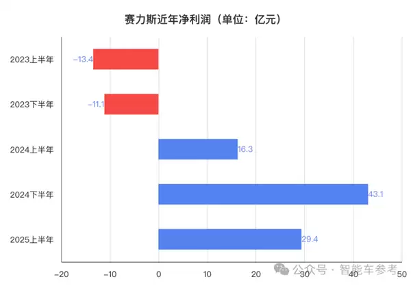 财报显示,赛力斯2025年上半年的归母净利润为29.41亿元,同比剧增81.03%,是理想汽车同期的1.68倍。
