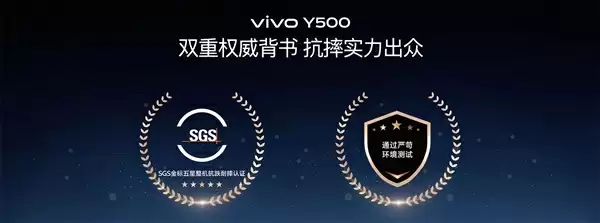 另外,vivo Y500获得瑞士SGS金标五星整机抗跌耐摔认证,测试项目包括多角度跌落测试、极限高度测试、极限次数跌落和抗弯折测试。