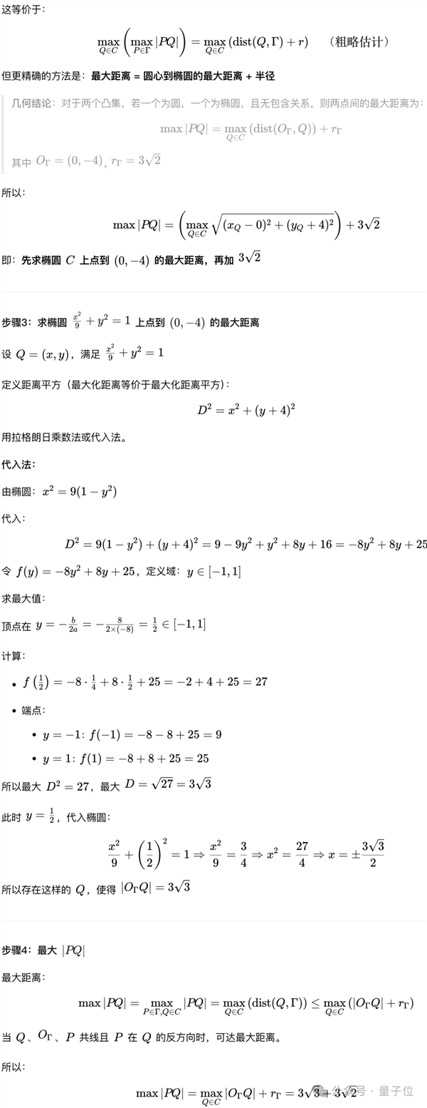 利用该结论,LongCat对最大距离进行了拆解,并通过代入等方法,最终计算出了正确结果。