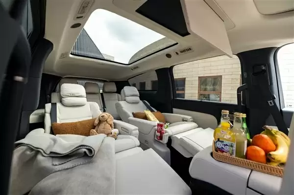 MEGA Home版本在第二排配备了两张头等舱级别的零重力座椅,其核心亮点在于支持无级电动旋转功能。