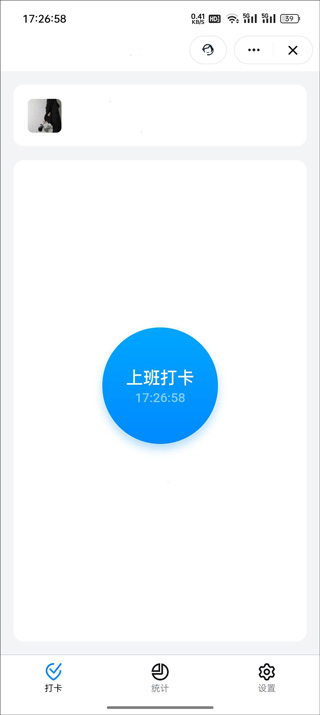 3、进入考勤打卡后,点击屏幕中间的打卡即可完成考勤打卡
