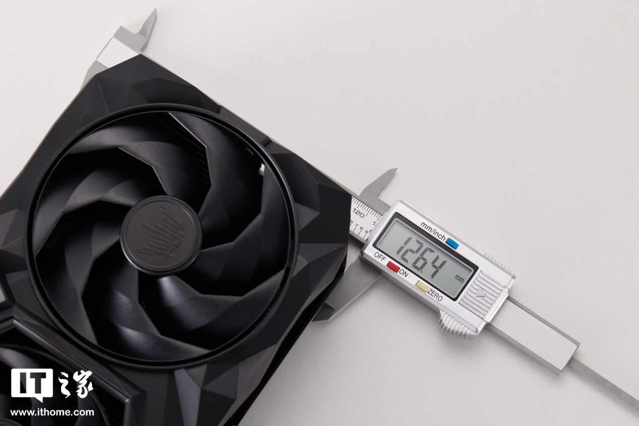 整体设计元素和白色款新品基本一致,显卡装甲采用大面积的棱形不规则装饰,层次感极强。中间风扇周围做了一圈六边形灯带,扇叶为三折优化设计,风扇顶部还有一个带有 RGB 灯效的皇冠图案,配合包装内附送的磁吸灯带模块,可组成完全体状态。