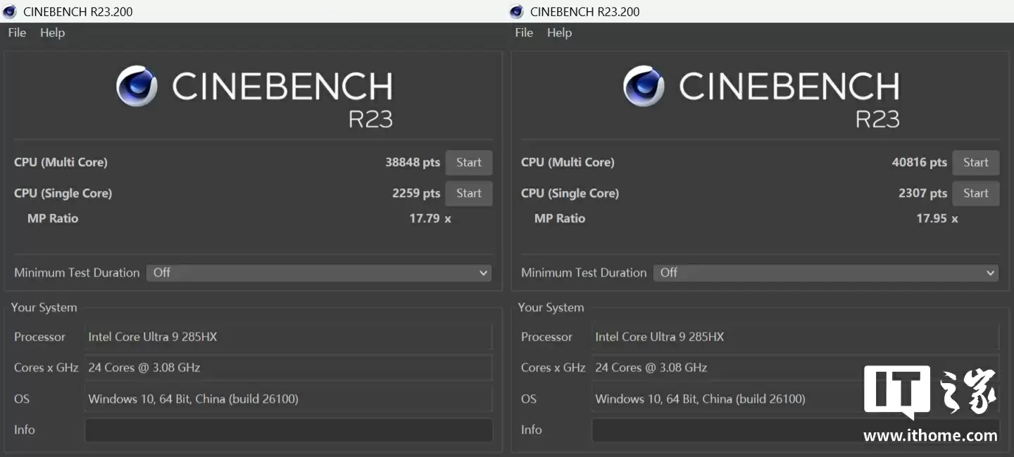 BIOS 性能模式相较 BIOS 均衡模式,多核性能提升了 5%,单核性能提升了 2.1%。