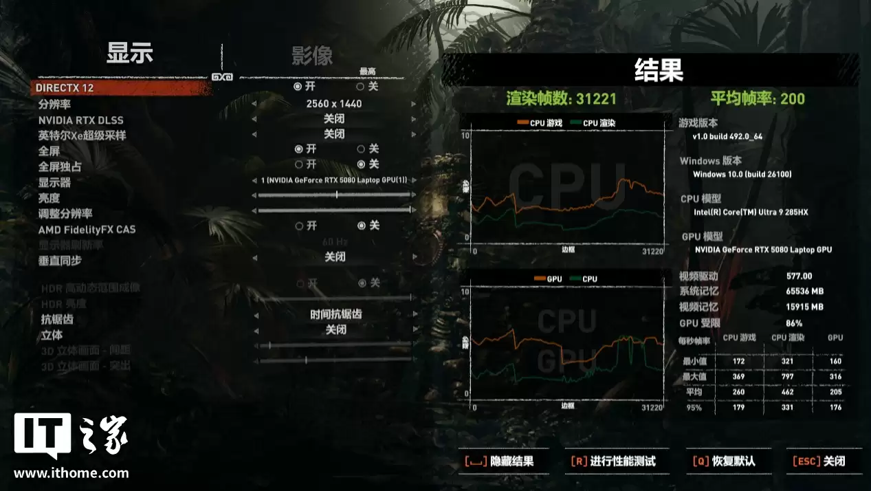 第二轮我们关闭光追选项,其它设置保持不变,此时: