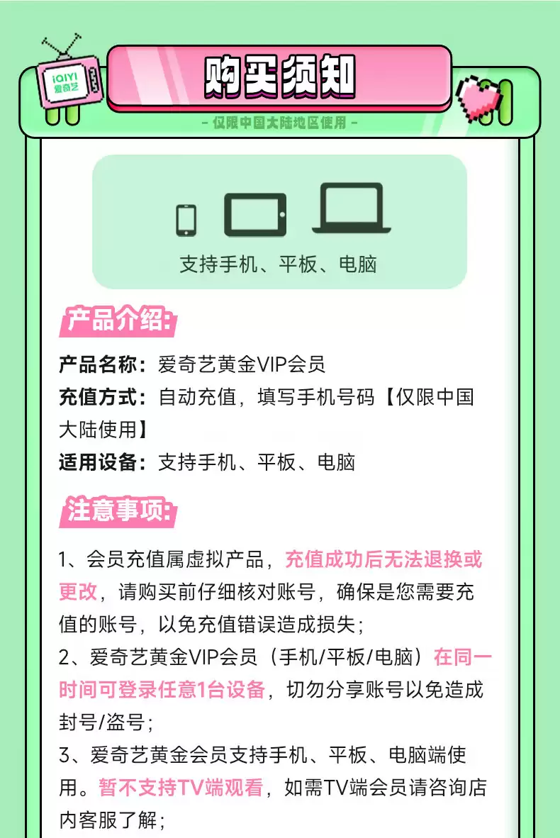 天猫爱奇艺 黄金会员年卡 10.8 元 / 月淘金币抵扣 129 元领 3 元券爱奇艺黄金 VIP 会员在同一时间可登录任意 1 台设备,支持手机、平板、电脑端使用(不支持 TV 端)。