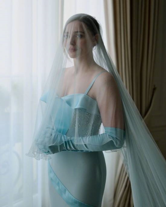 《Vogue》报道婚礼在上周末(北美劳动节假期)举行,并分享两人的婚纱造型,莫瑞兹着LV创意总监Nicolas Ghesquière为她定制的水蓝色婚纱,Harrison穿白色,造型亦来自LV。